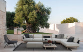 When the meeting takes shape, the time comes to establish a harmonious connection, which is made possible thanks to the fact that the furnishing elements and the landscape speak the same language: a language of symbols, represented by fabrics and refined materials. As for a real language, the position of the elements gives balance, communicates and creates. With Roda, the garden furniture represents the grammar for interior designers who delight in creating ever new poetry. The garden sofas proposed by Roda outline plots with multiple implications: each customer has the opportunity to tell their story through a specific choice of layout.