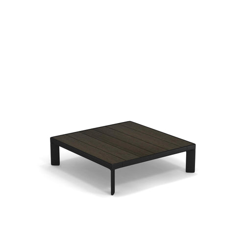 The Tami Low Table features slats available in either WPC (Wood Plastic Composite) or a natural bamboo composite, both of which maintain their original properties while offering durability and resilience in outdoor environments. Its sleek, simple design allows it to seamlessly integrate into various outdoor settings, providing a stylish surface for relaxation or entertaining.