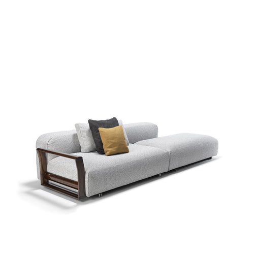 The Elba Sofa, designed by Massimo Castagna for Exteta, is a versatile modular piece that offers endless customization possibilities. Inspired by the serene ambiance of Elba, the famous island in the Tuscan archipelago, this sofa features soft, curved lines that evoke the design aesthetics of the 1960s. Its modular elements can be arranged in various configurations, whether as a linear sofa or combined with poufs and islands to create corner compositions tailored to individual needs.