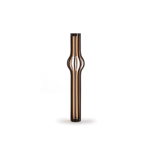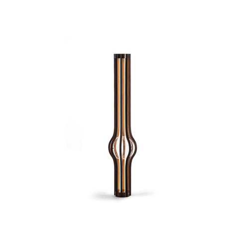 The Flou Ashaa Floor Lamp, designed by Stefano Bigi, is a captivating statement piece that embodies the perfect harmony of art, functionality, and innovation. This exquisite floor lamp features eight slim, elegantly curved slats with a rich coffee-brown oak finish, creating a striking visual that blends seamlessly with modern or classic interiors. These slats encircle a blown transparent glass sphere, which can be adjusted to rest in either the upper or lower section of the lamp, allowing for personalized design configurations. The Ashaa lamp goes beyond aesthetics with integrated LED lighting inserted within the slats and at the top, interacting brilliantly with the clear glass sphere to produce mesmerizing light effects. The lamp's illumination can be effortlessly controlled via a button-operated foot pedal, a remote control, or the advanced Casambi smart lighting system, which allows for remote control through a smartphone or tablet.