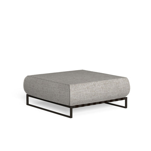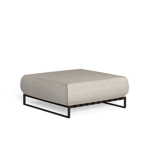 The Casilda Pouf by Talenti, designed by Ramon Esteve, serves as a versatile addition to any outdoor living area, perfectly complementing the Casilda modular sofa or armchair. This pouf embodies the collection's signature contrast between a structured, geometric frame and the inviting comfort of soft cushions, adding a modern and functional accent to outdoor spaces. Constructed with a powder-coated stainless steel frame, the Casilda Pouf is built for durability. The seat is supported by outdoor-specific polyester belts, ensuring both stability and resilience. Its weather-resistant cushion, filled with quick-dry foam and covered in a removable, washable fabric, offers convenience and comfort in any climate. This pouf seamlessly integrates with other pieces in the Casilda collection, providing a practical and stylish finishing touch to patios, gardens, or poolside lounges.