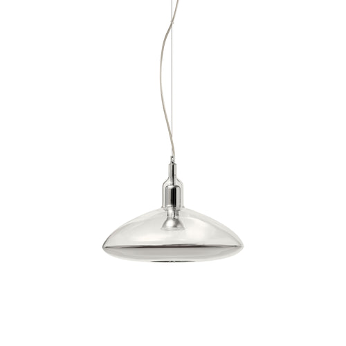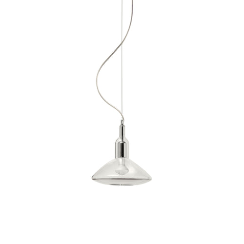 The Belle Soiree lamp is made in four versions: table, suspension, wall and floor. Of the four versions only one table is designed specifically for LEDs which reflected off the silver cap will soften and spread into space.