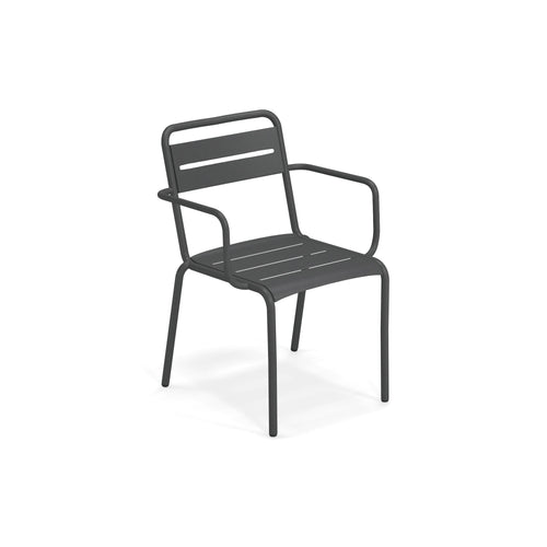 The Emu Star Aluminum Small Armchair, designed by the EMU D&S Lab, is part of the iconic Star collection that features a range of chairs, armchairs, stools, and tables. Renowned for its clean and simple design, this collection embodies versatility and elegance, marked by soft, classic lines that effortlessly blend into any outdoor environment.