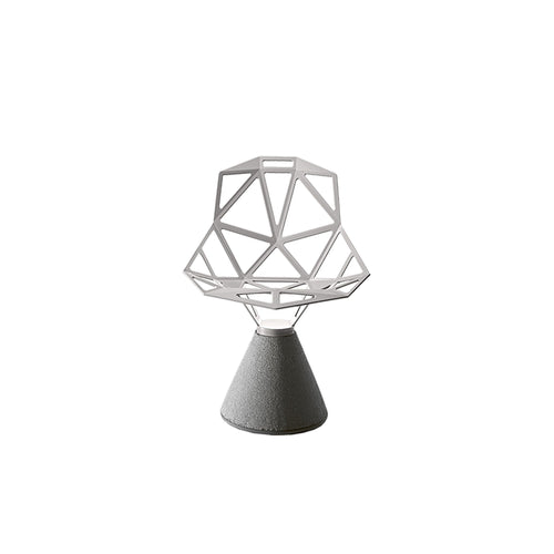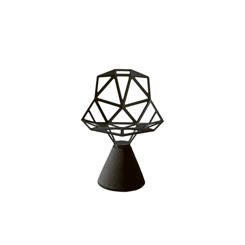 This chair's distinctive geometry, where open spaces dominate over solid surfaces, creates a striking aesthetic that blends both form and function. It's perfect for outdoor environments but versatile enough to be used indoors, offering a modern yet timeless appeal that complements a wide variety of contemporary settings. The robust concrete base provides stability, making it ideal for both indoor and outdoor spaces.