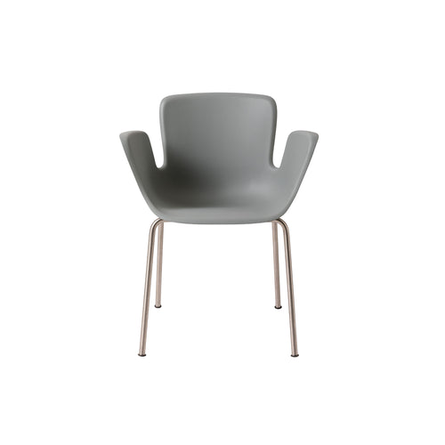 Recycled and recyclable polypropylene shell with glass fiber, obtained from recycled domestic waste, such as wasted plastic packaging. The use of polypropilene ensures to save up to 54% of gas emission. Upon request, it is possible to get a predrilled seat for water draining. Finishings: Shell JRE Grey - Base 435 Satin Stainless Steel