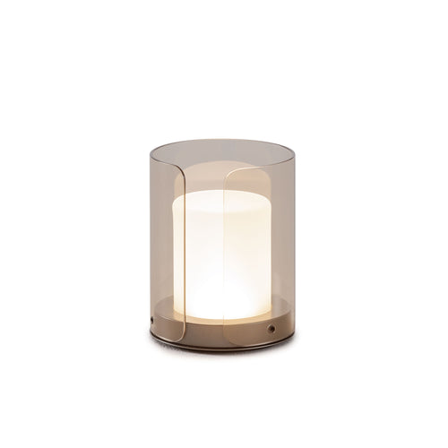 The Flou Alba Table Lamp designed by Ilenia Viscardi is an exquisite piece that exemplifies elegance and modern craftsmanship. This table lamp is constructed from a harmonious blend of matt burnished metal and bronzed Pyrex® glass, creating a sophisticated aesthetic that seamlessly complements any upscale interior. The cylindrical metal casing, finished with a matte burnished epoxy powder, embraces the bronzed glass shade, encapsulating the LED light source like a precious gem. Despite the inherent solidity and cool tones of its materials, the Alba lamp emits a warm and inviting glow, providing an ambient light that enriches any space.