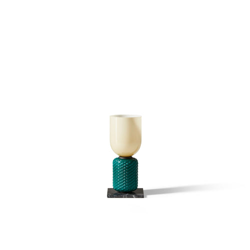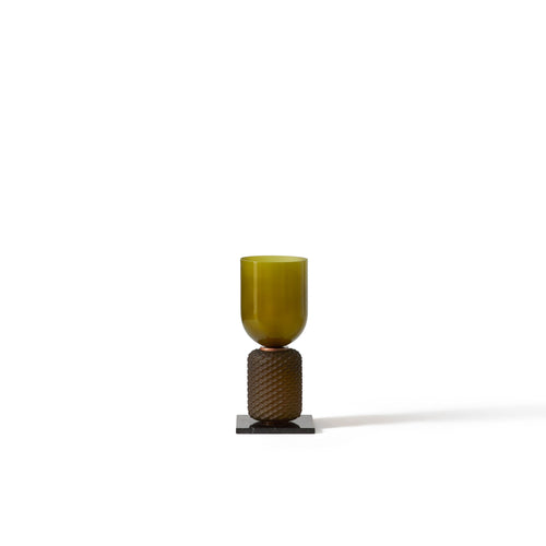 Lampada da tavolo h. 59 cm, base in marmo Marquina, piano in vetro Verde Oliva, corpo in vetro Grigio Tortora - verde e grigio
