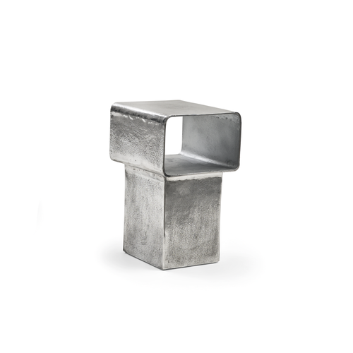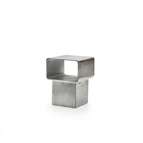 The Kira Side Table stands out with its bold design, masterfully balancing solid and void volumes. Crafted from cast aluminum, its clean geometries feature a cubic base and a square top with softly rounded corners. Available in striking Gold or Chrome finishes, the Kira table exudes a radiant, industrial charm, effortlessly blending modern elegance with a touch of contemporary flair. Perfect for adding a sophisticated edge to any space.