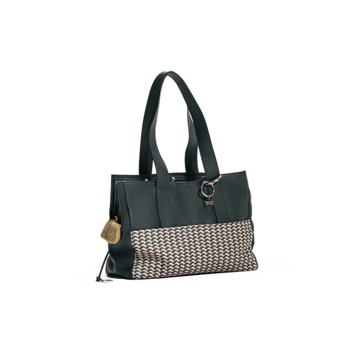 Le tasche frontali e il passante della tracolla sono realizzate in Pelle Frau® Motif Weavers