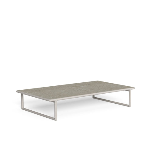 Tavolino da caffè da esterno con piano in pietra lavica smaltata