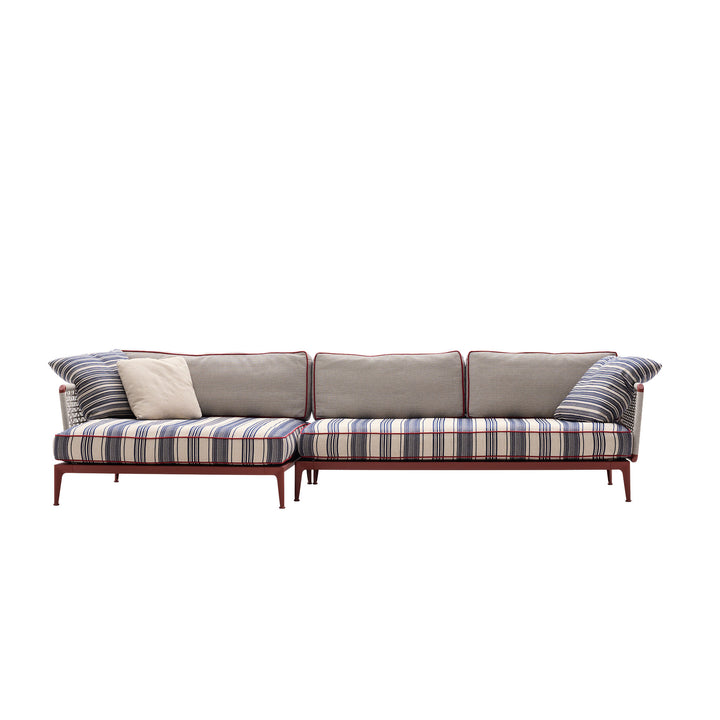 The Ribes Sectional Outdoor Sofa, designed by Antonio Citterio for B&B Italia, is a refined outdoor seating solution combining modularity, comfort, and contemporary elegance. Perfect for any transitional space such as a veranda, shady patio, or covered terrace, this sofa is designed for relaxation and fluid indoor-outdoor living. Its futon base with flexible glass fibre slats, resting on a sturdy aluminium frame, allows customizable configurations, offering unmatched comfort and versatility. Ideal for both casual lounging and formal gatherings.