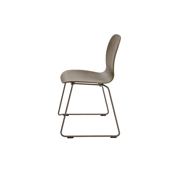 Stackable chair: up to 6 pieces. Finishings: Shell A42 Mud - Sled Base 71 Mud