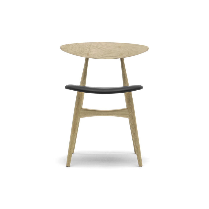 The CH33P’s construction is a testament to Wegner’s commitment to both form and function. The chair’s ergonomic dimensions—meticulously calculated to offer optimal comfort—reflect Wegner’s deep understanding of human anatomy. Its curved backrest, made from form-pressed veneer, is enhanced by visible round cover caps that add a subtle yet distinctive design element. The chair’s wooden frame exudes a vibrant, natural beauty, making it a versatile piece for contemporary and classic interiors alike.