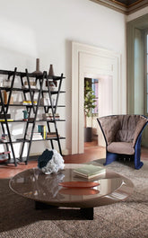 The Cassina Accordo low table, designed by the iconic Charlotte Perriand, embodies a bold, sculptural presence that transcends time. Originally crafted for a retrospective exhibition at the Musée des Arts Décoratifs in Paris in 1985, this piece was intended as a one-off, making it one of Perriand’s final and most personal works. Today, Accordo continues to capture attention with its striking design and remains as fresh as ever in its various color finishes, including the original black lacquer, China red, and marron glacé. This coffee table's clean, geometric lines create a visual impact, especially when placed together in a composition, evoking a sense of balance and suspension. The dynamic forms of Accordo invite multiple interpretations, making it more than just a functional piece, but rather an artistic centerpiece in any room.