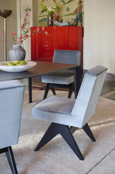 The Cassina Committee Chair, part of the Hommage à Pierre Jeanneret collection, is a sophisticated blend of elegance and functionality. Originally designed by Le Corbusier and Pierre Jeanneret to furnish the grand political buildings of Chandigarh, this chair has been faithfully reinterpreted while maintaining its distinctive, modernist spirit. The chair’s restrained, clean lines are complemented by the signature inverted "V" lateral supports, a hallmark of Jeanneret’s iconic designs. Available in its original version with armrests or in a versatile armless version, the Committee Chair fits seamlessly into both living and dining rooms. Its structure, crafted in historic teak, natural oak, or oak stained black, offers a harmonious contrast with the soft, upholstered seat and backrest. The removable upholstery, available in either leather or fabric, ensures both comfort and ease of maintenance, making it practical as well as stylish. Distinguished by the Hommage à Pierre Jeanneret logo on the wooden frame and the Cassina label sewn onto the backrest, each piece in this collection reflects the high quality and artisanal craftsmanship for which Cassina is renowned.