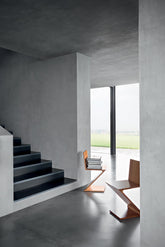 Crafted with exceptional precision, the Zig Zag chair showcases the expertise of Cassina’s carpenters, especially in the flawless execution of its dovetail joints, which enhance both its strength and aesthetic appeal. The open-pore finish, available in a range of colors, highlights the natural grain of the wood, emphasizing the interplay between vertical, oblique, and horizontal lines.