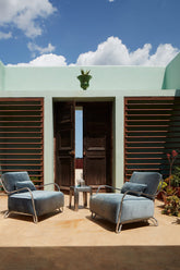 Exteta designs and manufactures sofas, chairs, beds, kitchens, tables and other outdoor furnishing accessories. The space surrounding the Exteta house creates refined and original environments, open-air interiors, unique islands where you can rest and enjoy nature.The chairs like all Exteta products are immediately recognizable: the design is functional and the furnishing accessories are characterized by unique aesthetic qualities. In fact, Exteta furnishings are not created for mass production, but for a nearly handcraft production: the customization allows you to create unique objects, even aesthetically. The production upon request influences the design choices of a specific product: the aim is to transform an objective need into a fulfilled desire for beauty. The custom experience meets the need of the customer, the fulcrum of every project, but at the same time stimulates the creativity of designers, who can experiment with shapes and materials, contour the space and overcome the limits of nature, but without forcing. The pursuit of excellence, the careful and accurate selection of materials and the quality of the final product, are the elements that distinguish Exteta and place it among the brands that proudly represent the Made in Italy style worldwide.