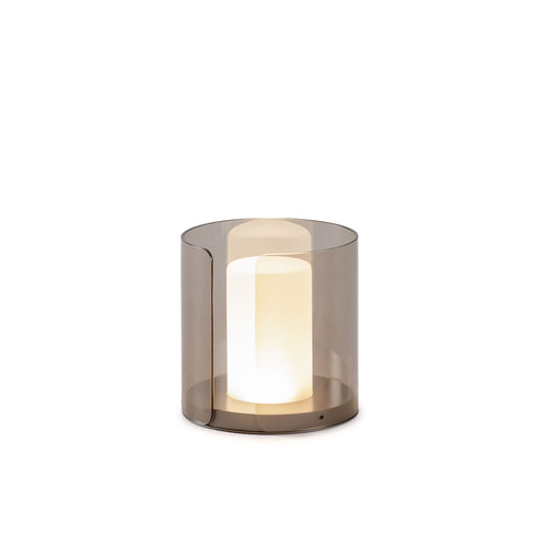 The Flou Alba Table Lamp designed by Ilenia Viscardi is an exquisite piece that exemplifies elegance and modern craftsmanship. This table lamp is constructed from a harmonious blend of matt burnished metal and bronzed Pyrex® glass, creating a sophisticated aesthetic that seamlessly complements any upscale interior. The cylindrical metal casing, finished with a matte burnished epoxy powder, embraces the bronzed glass shade, encapsulating the LED light source like a precious gem. Despite the inherent solidity and cool tones of its materials, the Alba lamp emits a warm and inviting glow, providing an ambient light that enriches any space.
