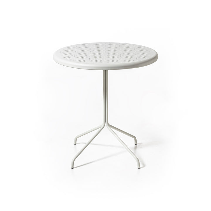 The table tops come in two striking options: perforated zinc-coated plates, offered in matching base colors, or concrete with decorative patterns in grey or white. Whether for an intimate gathering or a relaxed outdoor setting, the Brise Outdoor Small Table adds a contemporary touch, enhancing the outdoor dining experience with elegance and functionality.