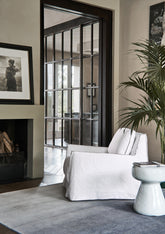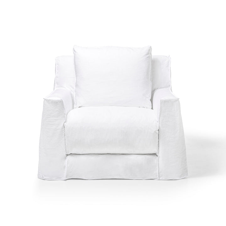 The Gervasoni Loll Armchair 01, designed by Paola Navone, redefines contemporary comfort with its blend of soft lines and clean geometries. The armchair features a solid wood structure, covered in high-density polyurethane foam, providing both durability and a comfortable sitting experience. Its hallmark is the large, inviting seat cushion, designed for maximum comfort with a soft layer of channelled goose down, which is also used in the backrest to enhance the chair’s plush, enveloping feel.