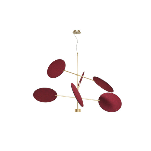 Available in small with 1 light point and 6 sound-absorbing discs or large with 3 light points and 12 sound-absorbing discs.