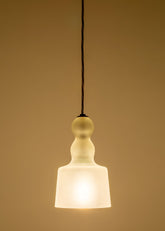 Acquamiki is the small version of the pendant lamp Aquatinta. The art and craftmanshing of the glass blowers and the quality of the Murano glass constitute the value, uniqueness and finesse of the piece. Originally the lamp was made of Murano glass. The lamp Acquamiki is in production since 1999 in clear, frosted, transparent green and glossy white.