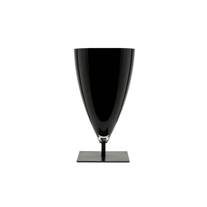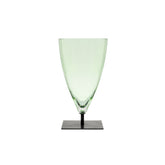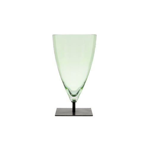 The diversity between glass and iron is the main theme of the project. The difference is accentuated thanks to the contrast: the base is in natural metal and is square and thin. It holds the vase, which is conical and trasparent. The cup is worked on in all phases using artisan methods; drawn from the fire and then blown by mouth. These are operations which required talent and knowledge of the materials. The green colour is the result of research into the reconstrution of the original colour of un-purified natural glass, mostly composed of sand, silica, iron oxide and chrome. With the Basequadra vase, Michele De Lucchi wanted to combine the transparency of glass with the ruggedness of metal. The effect of the mouth-blown glass is the only decoration, impure, composed predominantly of sand, iron oxide and chrome, with its unmistakable and unique green colour. When blown by mouth in a pure form such as the cup, a vase almost becomes a lens, in which the world is seen totally changed. Michele became more and more fascinated with the idea of combining blown glass, the thinnest and most transparent substance that man is capable of creating with iron, the symbol of hardness and industrialisation.
