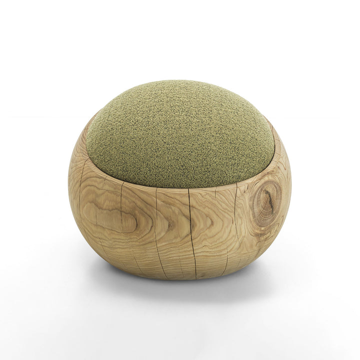 A solid scented cedar wood stool crafted from a single block, evoking the shape of pastry chef Iginio Massari’s iconic Bignè (cream puff). The seat is made comfortable by the presence of a soft cushion in leather or fabric.