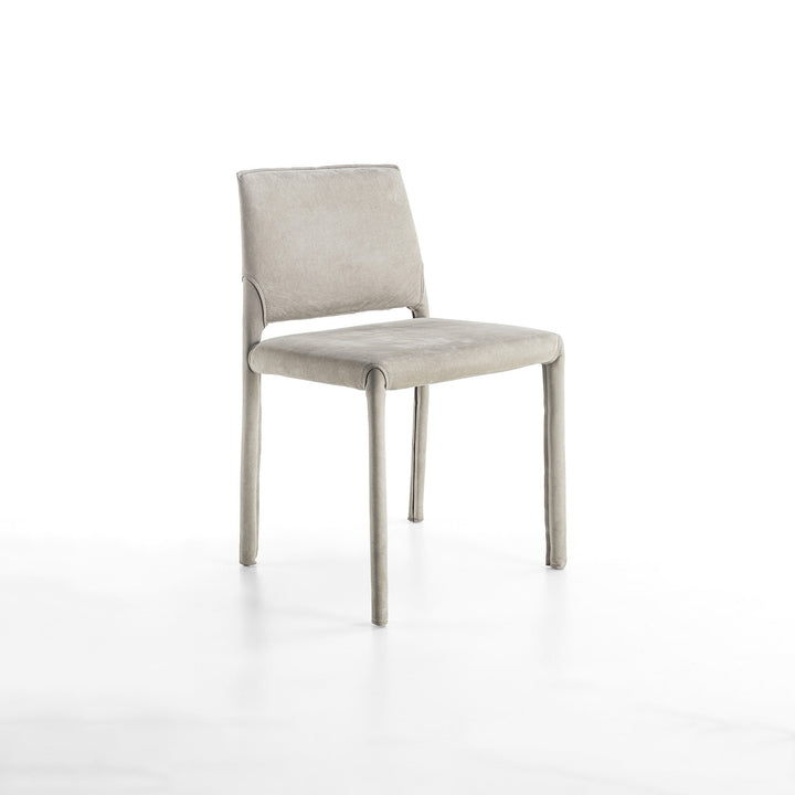 New softer version. A padding is added to the metal frame, giving it greater comfort and softness. Fully upholstered in leather, with visible stitching.