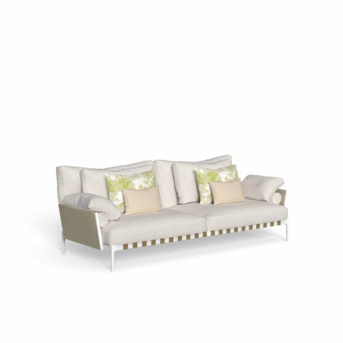 The Salinas Two-Seater Sofa by Talenti, designed by Ludovica e Roberto Palomba, is not only a statement piece but also a comfortable retreat. The padded strap in the back enhances both comfort and design, offering a stylish touch that elevates the overall aesthetic. Ideal for creating a seamless transition between indoor and outdoor spaces, the Salinas Three-Seater Sofa is perfect for those who value elegance and functionality.