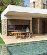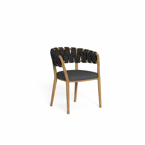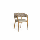 The Venice Dining Armchair by Talenti, crafted by designers Ludovica and Roberto Palomba, brings an air of refined elegance to outdoor dining spaces, inspired by the iconic charm of Venice. This armchair features a sturdy teak wood frame that provides a solid foundation while embracing a generously sized, comfortable seat. The cushions, upholstered in high-quality, weather-resistant fabric, are paired with a braided rope detail around the backrest, echoing a classic nautical style that elevates any outdoor setting. Designed to harmonize with the Venice collection, the Venice Dining Armchair offers both durability and sophistication, making it an ideal choice for enhancing gardens and patios with a touch of timeless Italian design.